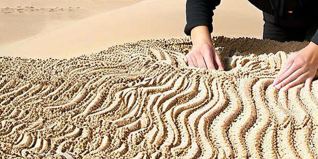 Исследователи создали модель песчаного ландшафта с добавкой биомиметических частиц. В течение 3 месяцев наблюдались формирование устойчивых и повторяющихся структур, напоминающих природные барханы.
